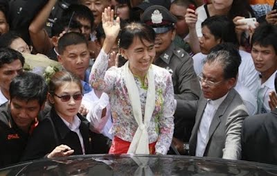 1 ျမန္မာ့ဒီမုိကေရစီေခါင္းေဆာင္ ေဒၚေအာင္ဆန္းစုၾကည္ ဒီေန႔ မနက္ပုိင္းထိုင္း-ျမန္မာနယ္စပ္ မဲေဆာက္ျမိဳ႕ကုိ ေရာက္ရွိ